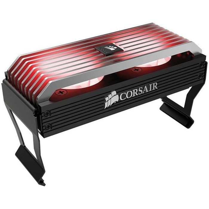 Dominator Airflow Platinum has dual PWM-controlled 50mm fans, each delivering up to 10.6 CFM at 3,700 RPM. The fans use more advanced ball bearings, rather than standard sleeve bearings, for durability at higher temperatures and quiet operation.