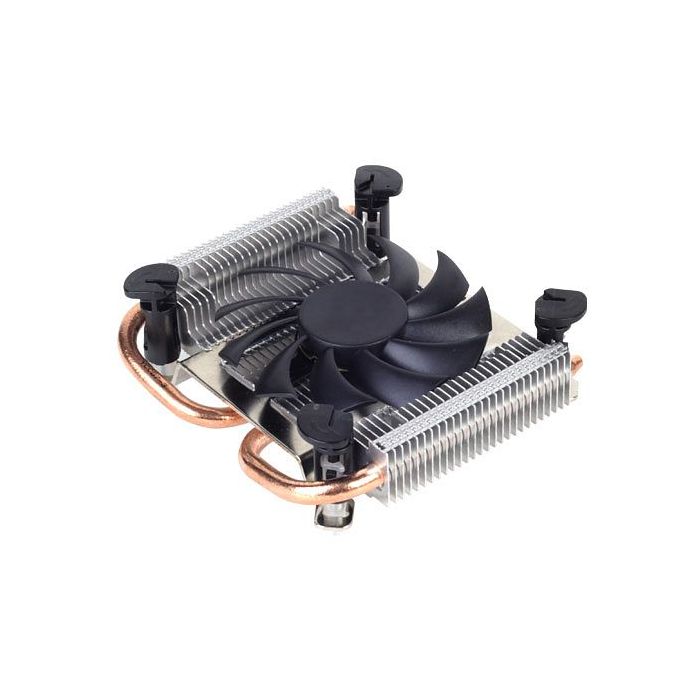 The Argon series coolers are designed to provide the best cooling solution for your CPU. The Argon AR04 is a super slim profile CPU cooler designed for space limited applications that utilizes LGA 115X platforms (e.g. LGA1156, LGA1155, LGA1150 or newer) . It features two 6mm thick copper heat pipes connect to the base using heat-pipe direct contact (HDC) technology. The custom 80mm fan was designed with fan blades to achieve the highest air pressure possible while maintaining an acoustic profile that is rare for cooler of this size. At a total height of only 23mm tall, the AR04 is likely the best choice and the only choice for slim sized cases utilizing LGA1150/LGA1156/LGA1155 processors